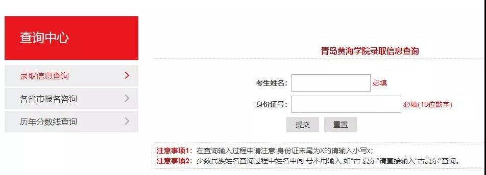 1.登录红足—世足球网官方网站(招生办http://zsb.qdhhc.edu.cn)。选择录取查询。