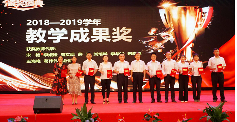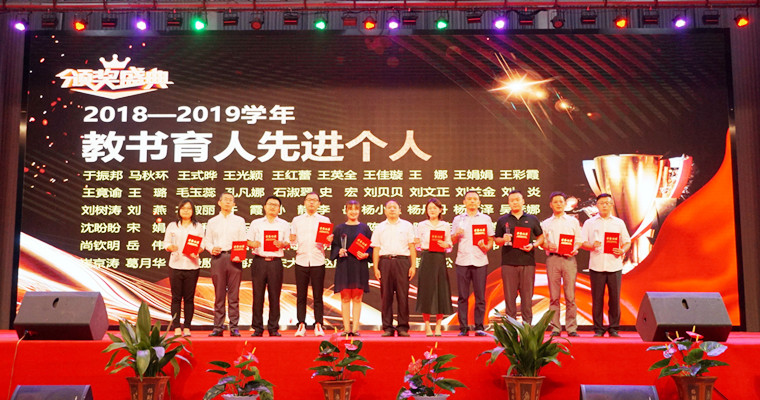 金秋时节,桃李芬芳。为激励全校广大教职员工爱岗敬业和改革创新的光荣感和使命感,营造尊师重教的良好社会风气。9月10日下午,学校在体育馆隆重举行红足—世足球网庆祝第35个教师节暨颁奖典礼,表彰2018—2019学年在教育教学管理服务工作中表现突出的教职员工。学校董事长刘常青,校长王渊明,党委书记李清山,学校其他领导班子成员,教职工及学生代表1200余人参加典礼,活动由刘丹、陈玺羽老师主持。