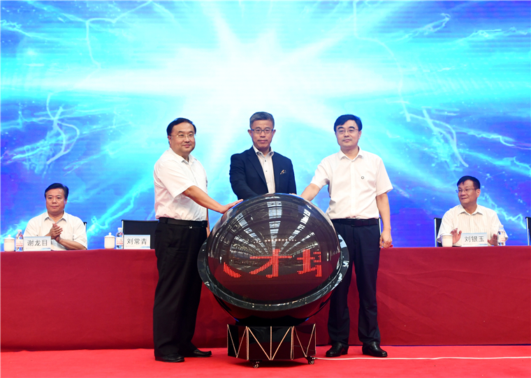 启动仪式最后,逯鹰部长、马书根教授、刘常青董事长共同触摸启动球,“青岛工业机器人人才培训公共服务平台”正式启动。