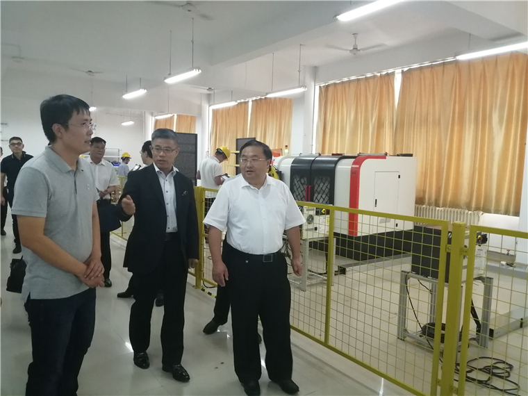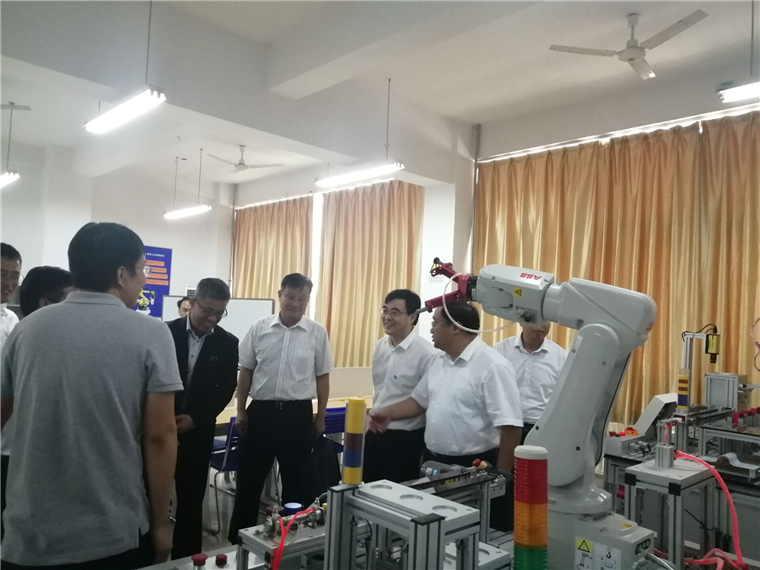 逯鹰部长、马书根教授、刘常青董事长等领导随后一同参观了“工业机器人人才培训公共服务平台”的实训区,询问了平台的建设、运行情况,并对平台给与了高度评价。