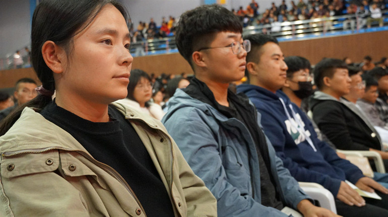 第二部分报告会在学校体育馆举行。学校董事长刘常青、校长助理刘纪新、校务委员会副主任兼关工委主任宋庆泽、智能制造学院副院长曹爱霞、孙丰鑫及师生代表共计3000人现场聆听了报告,报告会由智能制造学院副院长孙丰鑫主持。