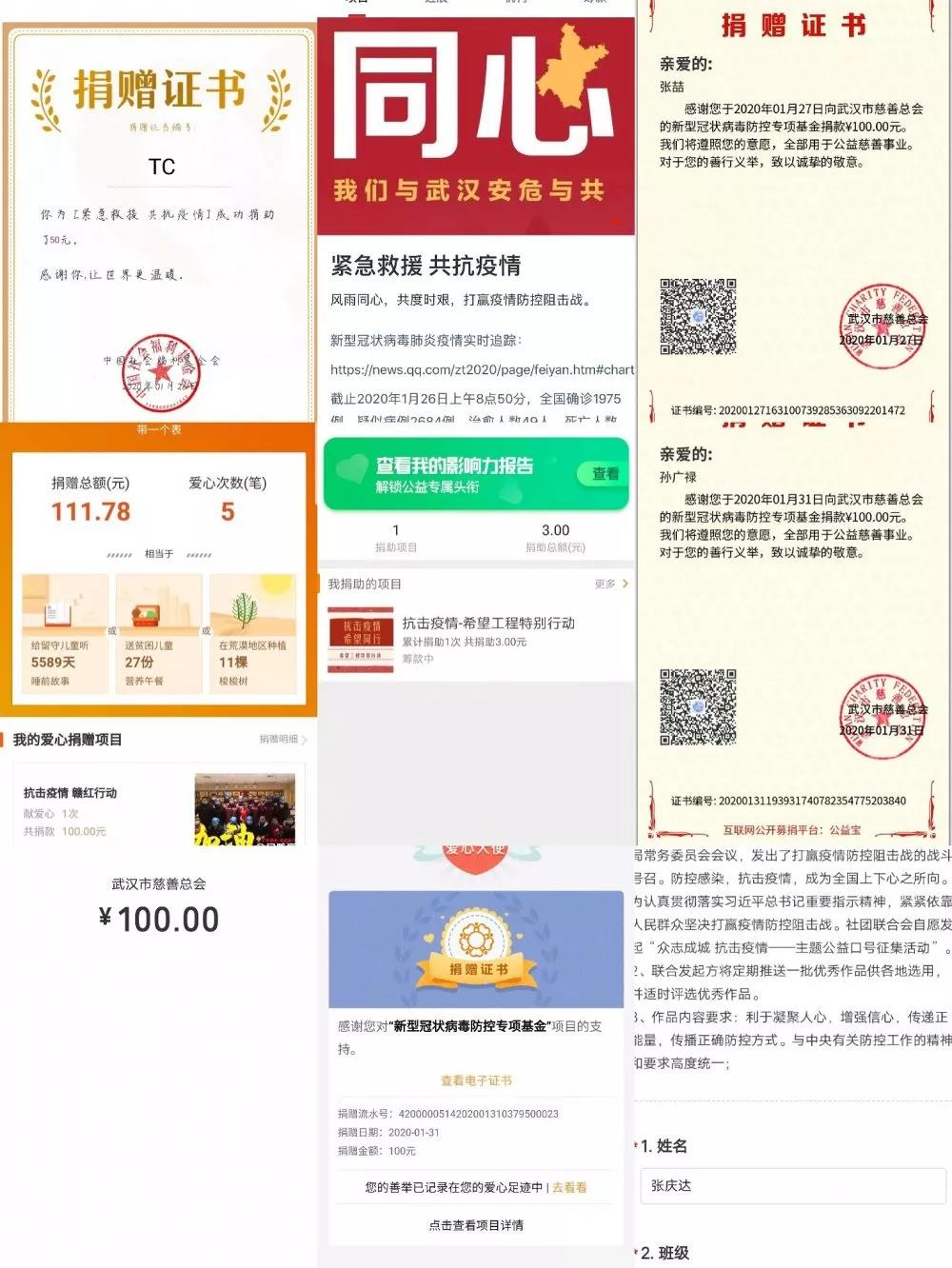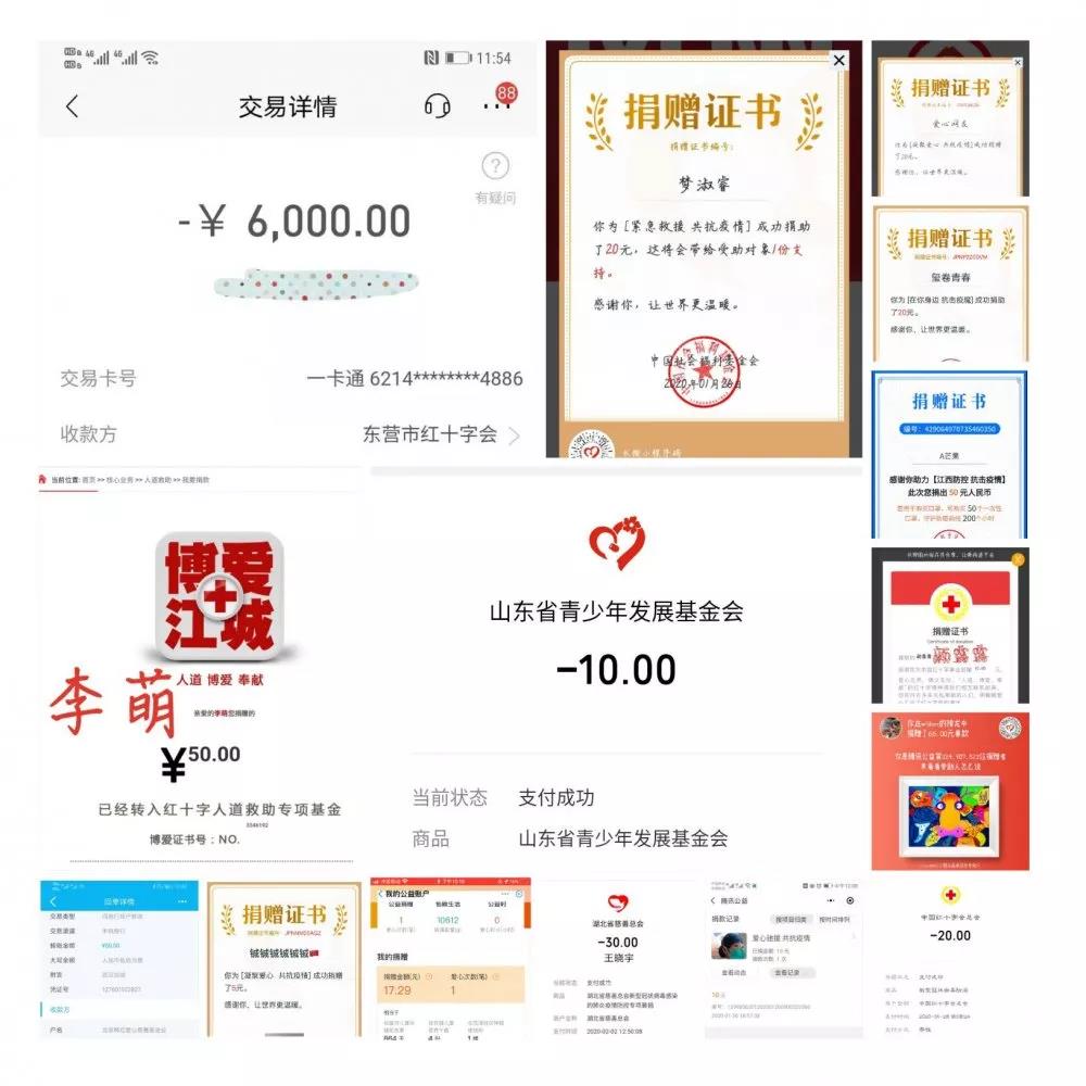 还有很多同学他们在默默的做着贡献,虽然现在的我们力量微薄,但并不代表我们一无是处,打赢新型冠状病毒这场战役需要我们团结一心,同舟共济,请相信国家,相信冲锋在抗击疫情一线的医务工作者们。