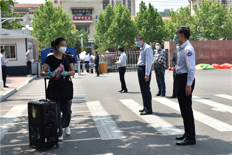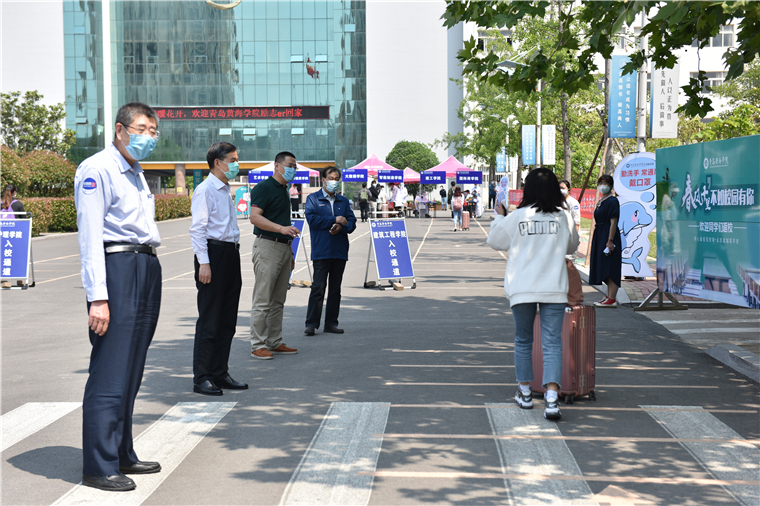 校长王渊明、校党委书记李清山等到校门口热情迎接返校学生,并来到体温检测点、“防疫爱心包”发放处等检查指导工作,强调要严格按照规范流程,做好服务与检测工作,确保学生顺利返校。