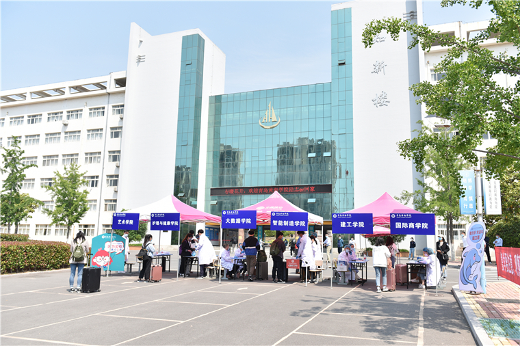 在二级学院报到登记处,返校学生有序排队登记,并领取“防疫爱心包”,口罩、体温计、消毒湿巾、校内防疫手册……点点滴滴承载着学校对学生无尽的关爱。