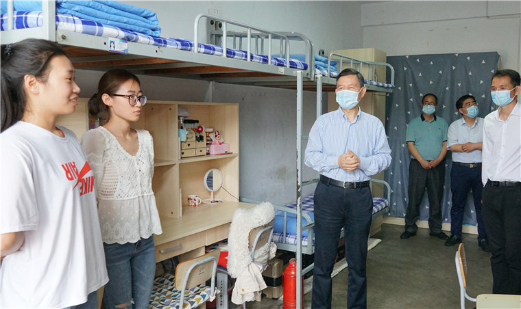 为了做好学生返校后疫情防控工作,调研开学后学生在学习生活方面存在的困难和急需解决的问题,不断提高服务质量和水平,6月3日,校长王渊明、校党委书记李清山等学校领导来到学生宿舍慰问返校学生。