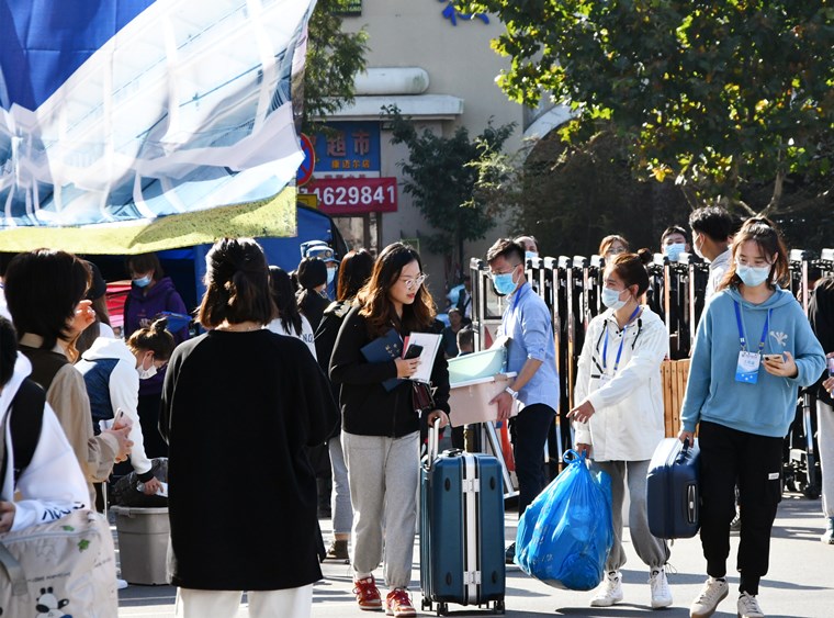 因疫情原因没能进校陪同孩子报到的姜女士说:“孩子今天来学校报到,我们全家来送行,没到学校的时候还担心报到手续会很繁琐,等待时间太长,刚才孩子给我打电话说,在老师和志愿者的帮助下很快就办理好了入学手续,我真心地为学校的精心安排和志愿者的热情帮助点赞!”