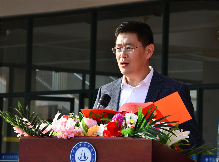 校长助理刘纪新教授讲话,他表示在新冠肺炎疫情深度冲击全球经济的大背景下,在核心技术遭遇种种封锁的危机时刻,唯有科技、创新才是走出危机、强国兴国的治本之道。本次大学生科技文化节是学校科创文化的缩影,也折射着学校“知行合一”的办学理念和办学特色。希望大家带着问题来,带着使命来,带着感悟去,将此次科技文化节中的所学、所感、所悟根植到今后的学习工作中,以砥志研思、求真求实的姿态提升科创能力与文化自信,为科技强国、文化强国贡献青春力量。