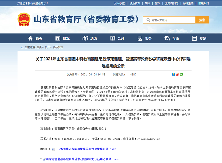 近日,山东省教育厅(省委高校工委)发布“关于2021年山东省普通本科教育课程思政示范课程、普通高等教育教学研究示范中心评审遴选结果的公示”。我院齐伟伟老师主持的课程《国际市场营销》名列榜中,入选2021年山东省普通本科教育课程思政示范课程。