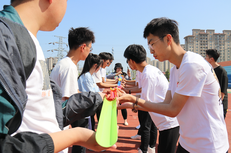 在正式比赛中,赛场上的每一个运动员、每一个团队,都牵动着在场所有人的心。在趣味体育比赛的赛场上,有趣的规则设置和团队竞赛形式,让大家在欢笑中体验协作精神。趣味比赛让大家加懂得,只要拥有热爱运动的精神和乐观的心态,生活中随处可见的简单道具都能成为我们锻炼身体的工具和快乐的源泉! 运动场上气氛热烈、人声鼎沸,这不单是智慧和体力的比拼,更是团结与协作的完美比拼,同学们的默契配合,让比赛现场更加妙趣横生。