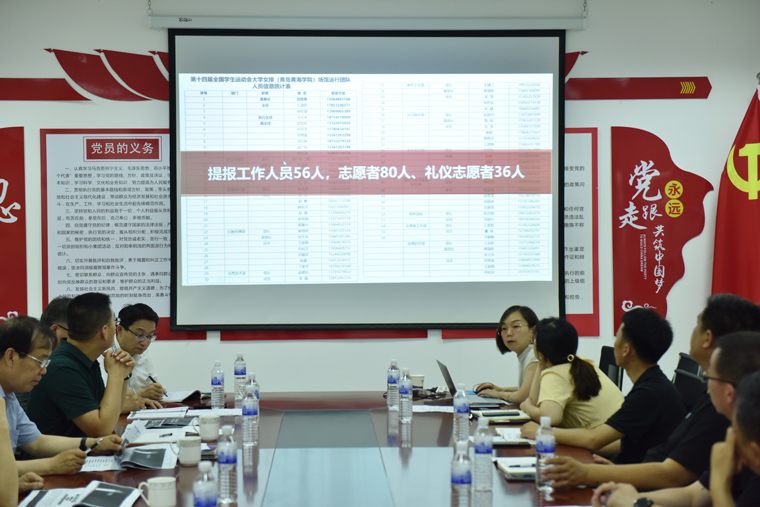 品牌传播部部长助理郭瑞姝汇报了学运会筹备整体情况。