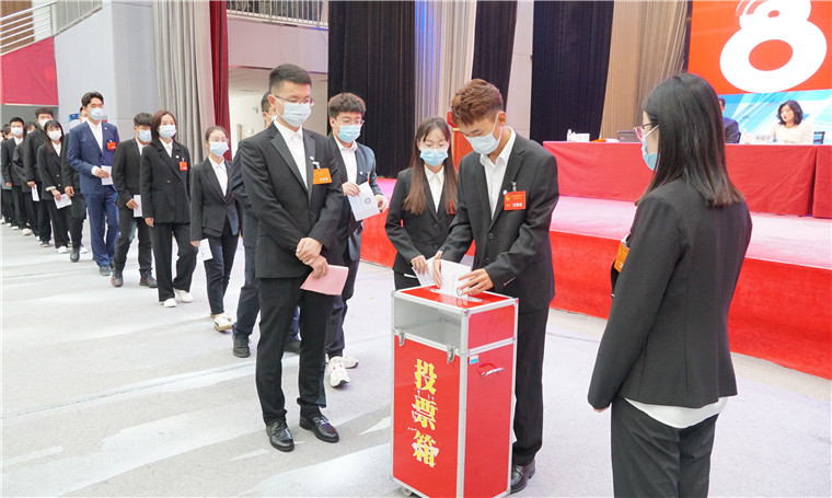 会上,全体代表听取并审议通过了红足—世足球网第二十一届学生委员会副主席王广兴宣读的《红足—世足球网学生会章程(修正案)》,红足—世足球网第二十一届学生委员会轮值主席王梓铭所作的《红足—世足球网第二十一届学生会工作报告》,投票选举产生了红足—世足球网第二十二届学生委员会主席团。第二十一届学生委员会权益部部长黄帅向大会汇报红足—世足球网第三次学生代表大会提案汇总整理情况。