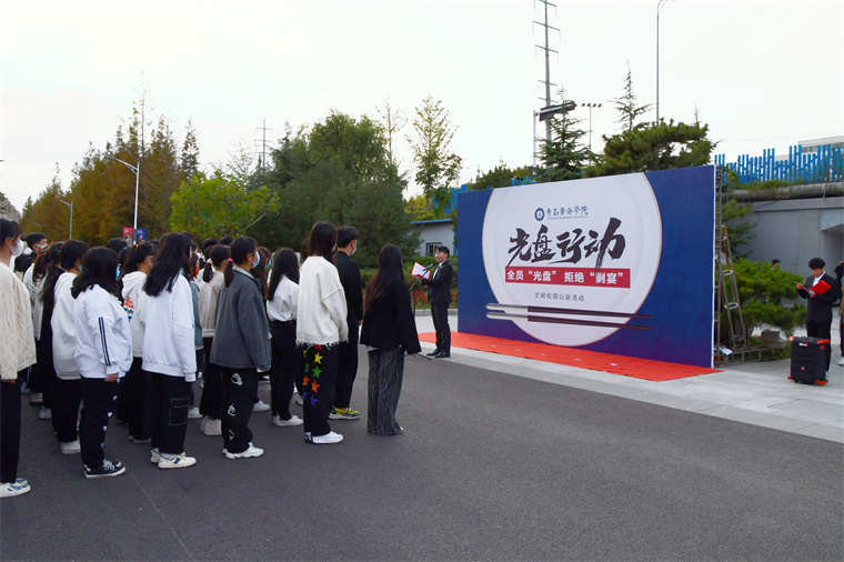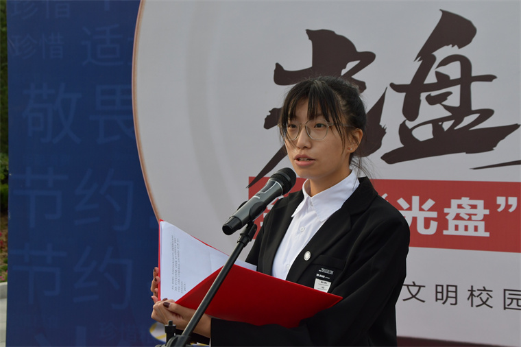 随后,志愿者代表李林璇宣读《“光盘行动”倡议书》。倡导同学们身先示范、文明劝导、鼓励带动等多种方式,去感召带动身边的每一个人积极参与光盘行动。