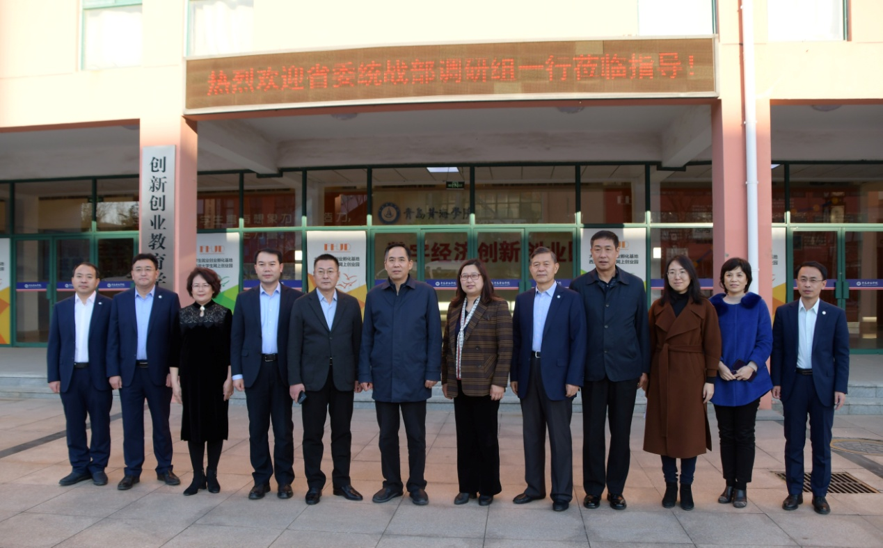 市委统战部副部长、市政府侨办主任张辉,西海岸新区工委区委常委、统战部部长尹来成等领导参加调研。学校校长王渊明、党委副书记陈玉水、副校长梁忠环,副校长孟广东等有关领导热情接待了调研组一行。