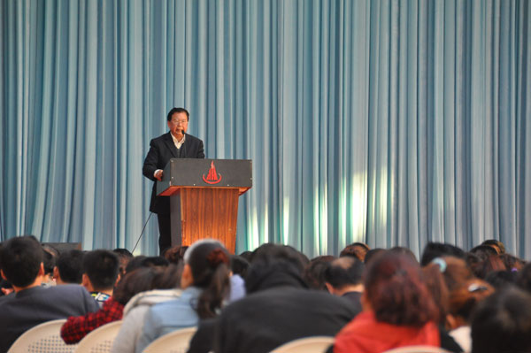在董事长报告会结束时,党委书记冯宜明以精炼的语言作了总结发言,高度评价了董事长所作的报告,认为报告内容详实、实事求是,充满改革创新的精神。对学院改革发展面临的形势,董事长在报告中作了准确的研判,大家既感受到严峻的挑战,更看到了难得的机遇,倍受鼓舞,因而对学院的快速发展充满信心!冯书记指出,改革创新将会全面激活学院的各项机制,为提高质量,内涵发展提供源源不竭的动力。冯书记说,董事长报告的最后一部分,贯穿着崭新的教育理念和育人观念,使我们对学院发展的光明前景充满期待。冯书记最后要求全体教职工要认真贯彻董事长讲话精神,转变观念,抢抓机遇,锐意改革,乘势而上,艰苦奋斗,坚韧不拔,学院就会真正实现内涵发展、特色发展、和谐发展、创新发展,百年名校的黄海梦就一定会变为现实。