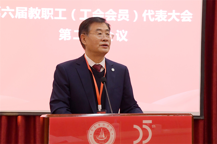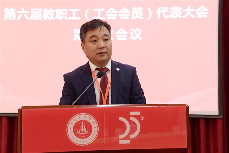 在全校上下深入学习贯彻党的十九届六中全会精神和欢庆建校25周年之际,12月25日,第六届教职工(工会会员)代表大会第二次会议胜利召开。董事长刘常青、校长王渊明、党委书记邢桂强等学校领导出席会议,正式代表、特邀代表、列席代表200余人分别在知新楼一楼西报告厅主会场和知新楼二楼多媒体教室分会场参加会议。大会由邢桂强书记主持。