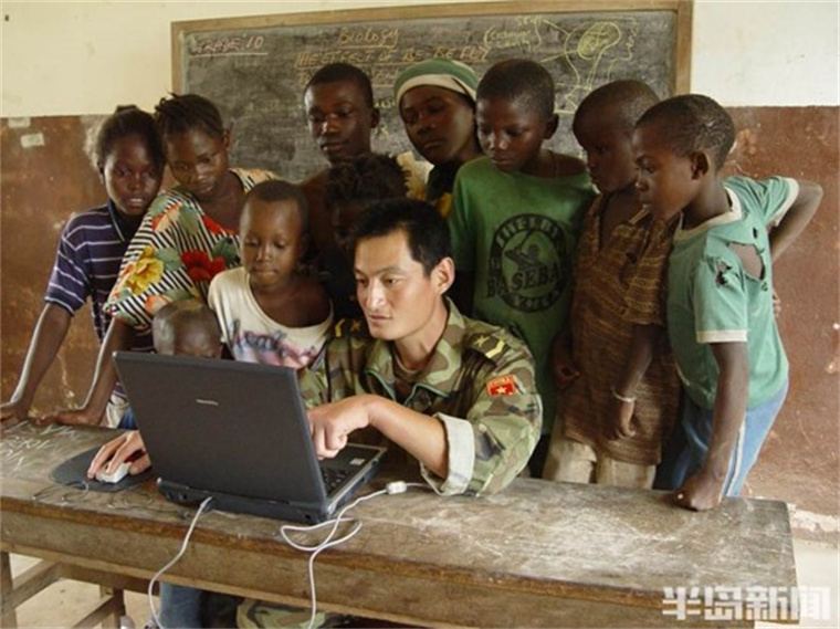 2004年,李桂臣在利比里亚维和期间,给非洲的孩子们带去雷锋的故事