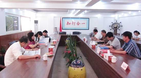 7月8日上午,青岛市文物局博物馆处刘红燕处长、青岛市博物馆学会马庚存秘书长等一行四人莅临我院,就博物馆筹建情况进行考察和指导,并与我院博物馆筹建工作人员进行了座谈。董事长刘常青,院长助理、教务处主任王法能出席了座谈,灵山卫街道办事处工委副书记杜文秋陪同接待。