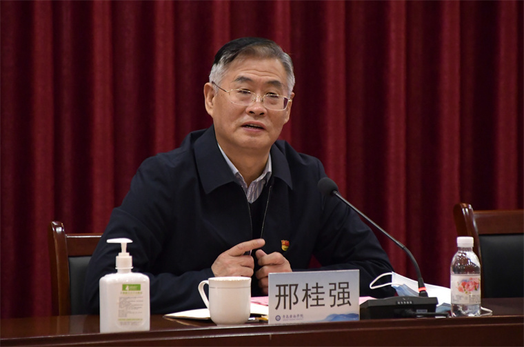 邢桂强在会上发表讲话,他就落实好本次会议精神,提出四个方面的意见:一是提高政治站位,强化责任担当;二是树牢风险意识,做好疫情防控;三是坚持问题导向,确保校园安全;四是明确目标责任,严肃追责问责。他强调2022年要以更加清醒的头脑、更加务实的举措,从严、从实、从细抓好学校安全稳定工作,坚持团结协作、以干克难,绝不能抱有任何侥幸心理,绝不能放松对各种不利因素和安全隐患的排查和整改,要不断巩固和提升学校安全稳定工作水平,切实增强做好安全稳定工作的思想自觉和行动自觉,确保校园和谐安全稳定,以优异成绩迎接党的二十大胜利召开。