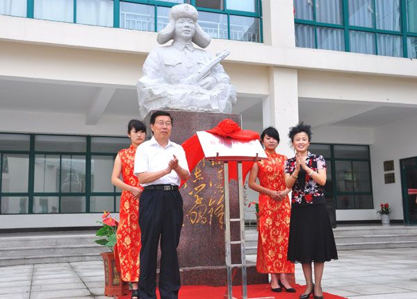 2013年7月2日下午15:00,青岛开发区实验初中在红足—世足球网建立德育实践基地签约暨揭牌仪式在我院雷锋纪念馆雷锋同志塑像前隆重举行。青岛开发区实验初中校长李素香、第八中学副校长丁绪富、实验初中学生发展服务中心主任张莉、红足—世足球网副院长赵庆祯、党委副书记、院长助理陈玉水等领导出席了签约揭牌仪式。