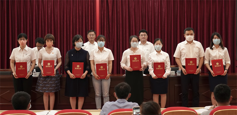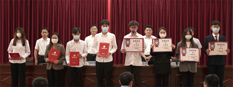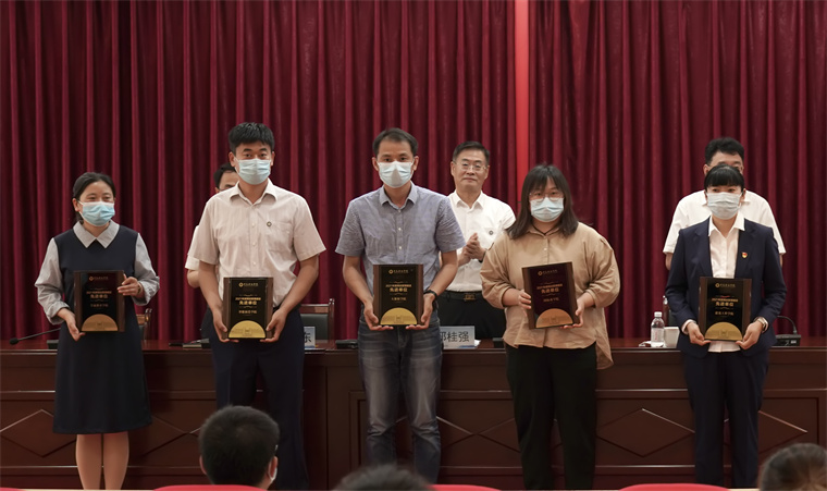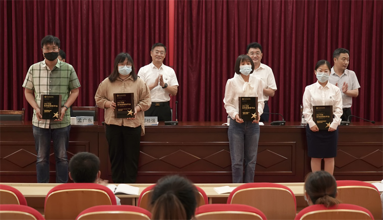 党委副书记陈玉水宣读《关于表彰2021年度宣传思想工作先进集体、优秀新媒体平台、网站管理建设先进单位、宣传思想工作先进个人、优秀学生记者的决定》,对智能制造学院等6个“宣传思想工作先进集体”;“黄海智能在线”微信公众号等10个“优秀新媒体平台”;学前教育学院等6个“网站管理建设先进单位”;王艳杰等8名“宣传思想工作先进个人”;高玥琪等75名“优秀学生记者”予以表彰和奖励。获奖集体、教师和学生依次上台领奖。