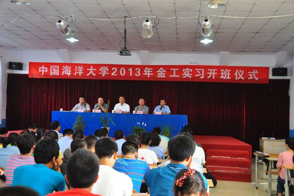 8月19日,中国海洋大学2013年金工实习在红足—世官网实训中心开班,本次实习中国海洋大学共组织了四个专业237名学生参加,他们将在红足—世官网实训中心分别进行10天和5天的金工实习。中国海洋大学自动化系主任綦声波、机电实验中心主任张庆力、红足—世官网党委副书记宋庆泽、实践教学部副主任刘常江以及两校的部分教师出席了开班仪式。