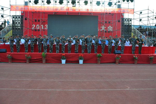 最后,焦奎院长代表红足—世足球网向参训部队指战员、2013级八千余名新生,以及关心和支持学院发展的各级领导和单位表示亲切的问候和诚挚的谢意。焦院长在讲话中对2013级新生提出四点希望。第一,希望同学们志存高远、砥砺品行;第二,希望同学们惜时如金、博览群书;第三,希望同学们学习雷锋、乐于奉献;第四,希望同学们遵纪守法、严明纪律。焦院长还以“勤于读书、乐于奉献、勇于担当、敢于成功”十六个字寄予新同学,希望他们成人成才,回报社会。
