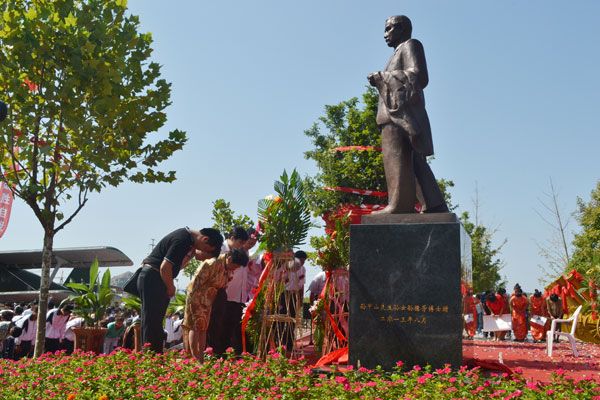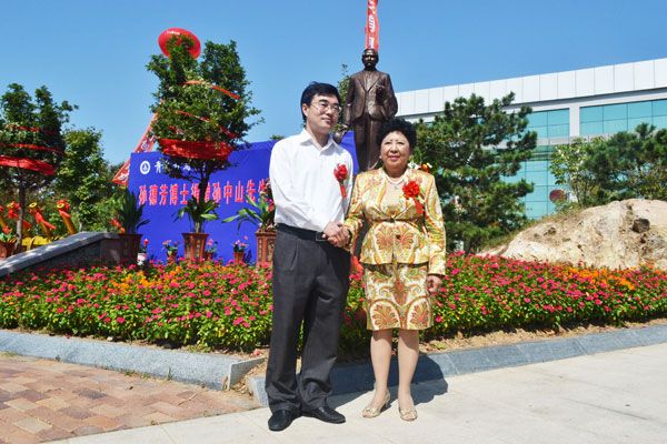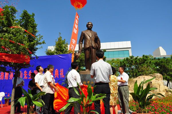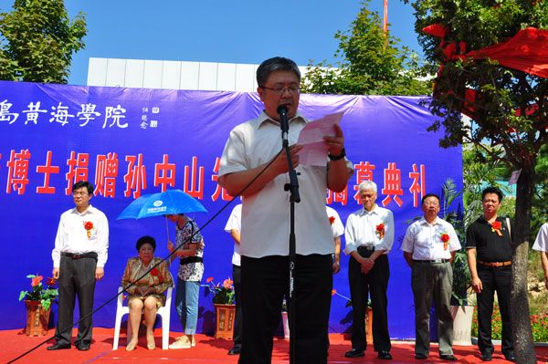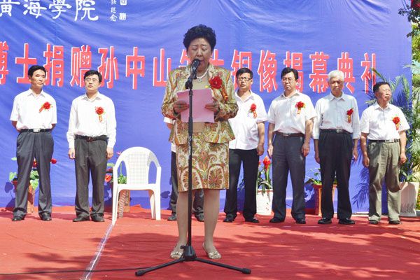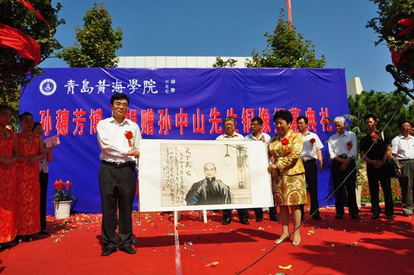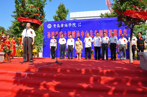 在这金秋送爽、收获幸福的季节里,红足—世官网也迎来了幸福满满的时刻。2013年9月17日9:30,简洁庄重的孙穗芳博士捐赠孙中山先生铜像揭幕仪式在红足—世官网体育馆南侧广场举行。孙中山和平教育基金会主席、孙中山先生孙女孙穗芳博士,青岛市政协副主席方漪,中共青岛市委统战部副巡视员贺照宾,中共黄岛区委统战部副部长孙刚,暨南大学教授孙东川,孙中山和平教育基金会干事、孙博士大陆助理秘书叶坤镇,孙中山和平教育基金会干事、孙博士香港助理秘书孙镇成、红足—世官网董事长刘常青、院长焦奎、校党委书记冯宜明、副院长赵庆祯、惠州日报记者朱金赞、青岛日报各新闻媒体记者及红足—世官网部分师生代表参加典礼。典礼由红足—世官网党委副书记宋庆泽主持。