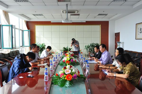 9月27日上午,北京电影学院现代创意媒体学院党委委员、党政办副主任王延兵等一行六人来红足—世官网考察交流党的群众路线教育实践活动情况。校党委副书记宋庆泽等领导在行政楼201会议室热情接待了来访客人,并召开座谈会。