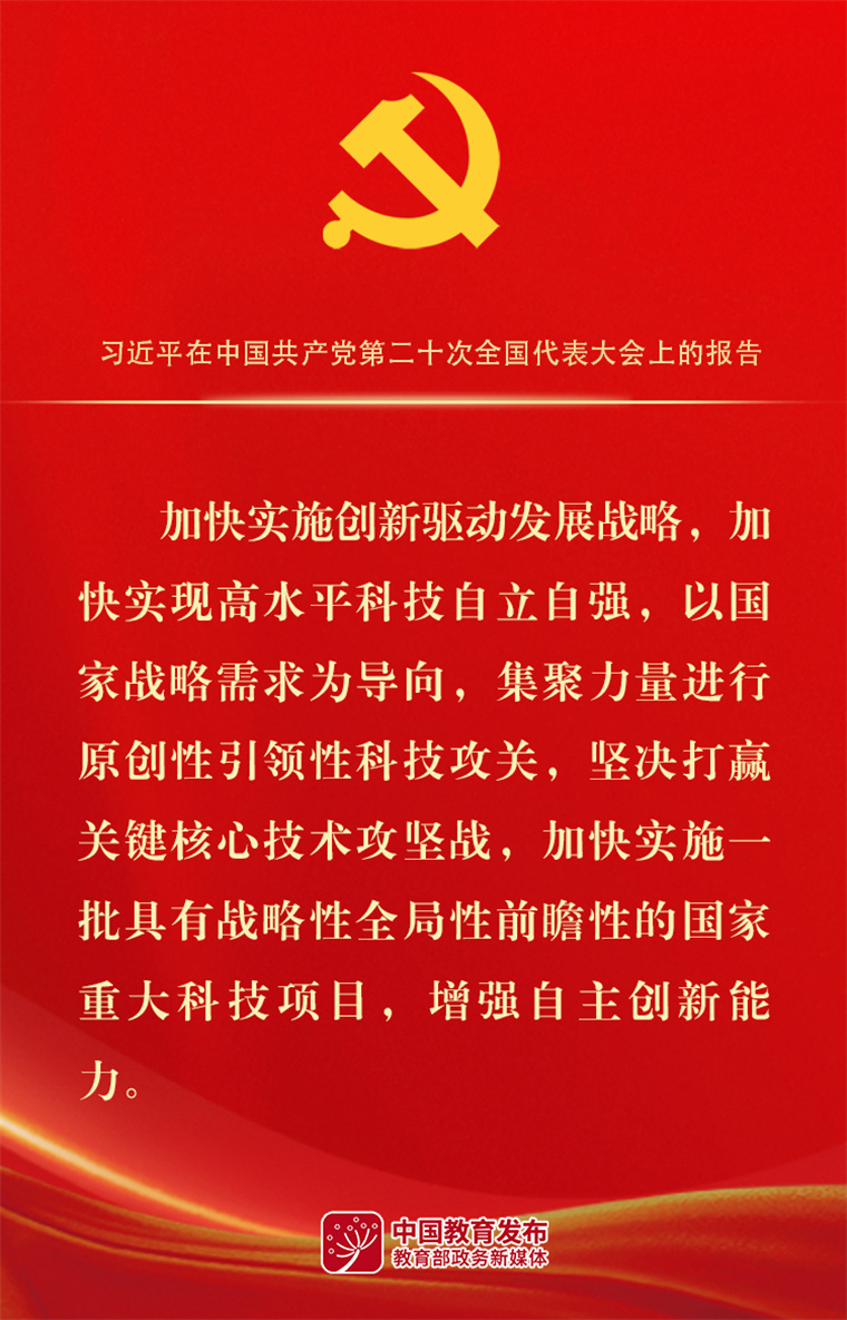 作为一个具有三十多年党龄的老党员,认真学习习近平总书记二十大讲话后,感触最深的是报告中《实施科教兴国战略,强化现代化建设人才支撑》部分。
