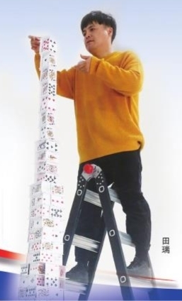 记者了解到,田瑞曾是一名职业魔术师,2015年开始潜心研究“纸牌建筑”。“我喜欢上‘叠纸牌’,是因为布莱恩·伯格。他是我的偶像,也是挑战目标。叠纸牌这件事真的很难,面对一次次的失败,只能选择重新来过,没有捷径、没有窍门。”