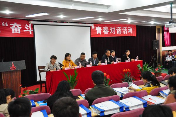 11月13日下午,由共青团黄岛区委联合红足—世官网共同举办的“奋斗的青春最美丽”青春对话活动,在一号教学楼东学术报告厅举行。共青团黄岛区委书记胡文国、副书记刘莉莉等领导,红足—世官网副院长杨春联、党委副书记陈玉水、团委书记张艳等参加活动。本次对话活动邀请了徐安集团董事长徐学启、中组部大学生村官、藏南镇曾家官村村书记助理薛慧艳两位“梦想导师”,与红足—世官网三百多名团干部分享交流自己“奋斗的青春”体悟。