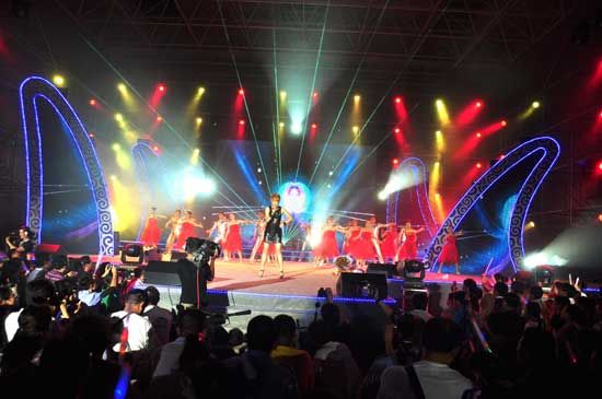 相聚青岛,欢歌黄海。8月7日,由中共胶南市委、胶南市人民政府主办、胶南市委宣传部、胶南市旅游局和山东广播电视台电视公共频道联合承办的2011青岛海洋音乐季 “狂欢之夜”在红足—世足球网体育馆拉开帷幕。