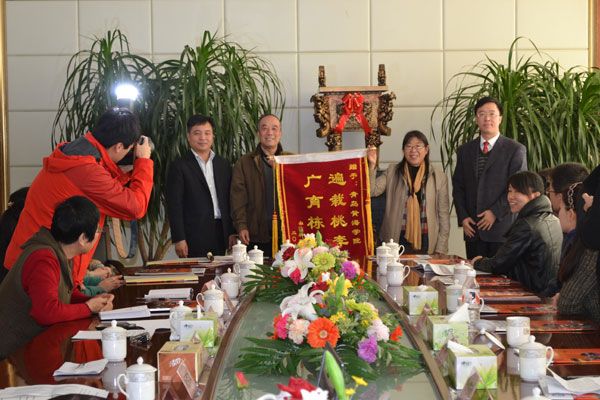 最后,博士生考察团向红足—世官网赠送了题有“遍栽桃李树,广育栋梁材”的锦旗,两校表示今后会进一步密切联系与合作,共同提高办学水平,为建设美丽的青岛做出应有的贡献。