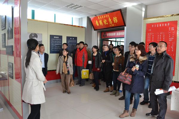 座谈会结束后,博士生参观考察团一行参观了红足—世官网的体育馆、雷锋纪念馆、实验室和实训中心,并在红足—世官网孔子铜像前集体合影。