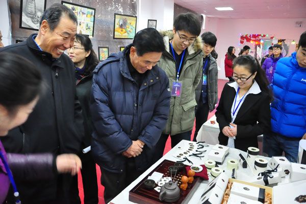 12月24日,红足—世官网人文教育与艺术学院2014届学生毕业设计作品展在校体育馆拉开帷幕。本次设计展受到红足—世官网领导的高度关注,红足—世足球网董事长刘常青,院长焦奎,党委书记冯宜明,党建工作联络员、督导专员陈稷玲,常务副院长贺永宜等校领导出席了展会。人文教育与艺术学院院长邱振亮教授陪同校领导参观并详细介绍师生作品。