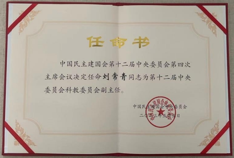 刘常青董事长担任民建第十二届中央委员会科教委员会副主任