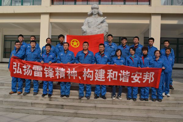 中国化工集团青岛分公司员工在雷锋塑像前合影留念