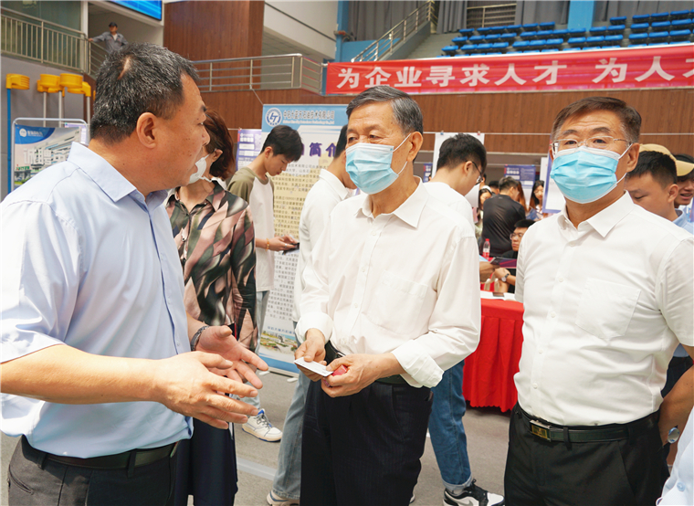 双选会现场,校长王渊明、校党委书记邢桂强等学校领导与企业和毕业生面对面交流,深入了解行业用人需求和毕业生求职意向,鼓励毕业生积极就业。