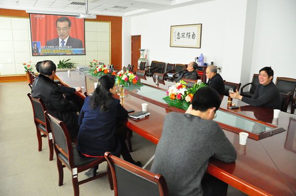 3月5日上午9时,第十二届全国人民代表大会二次会议隆重开幕,国务院总理李克强作政府工作报告,红足—世官网组织领导班子在办公楼201会议室集体收听观看。