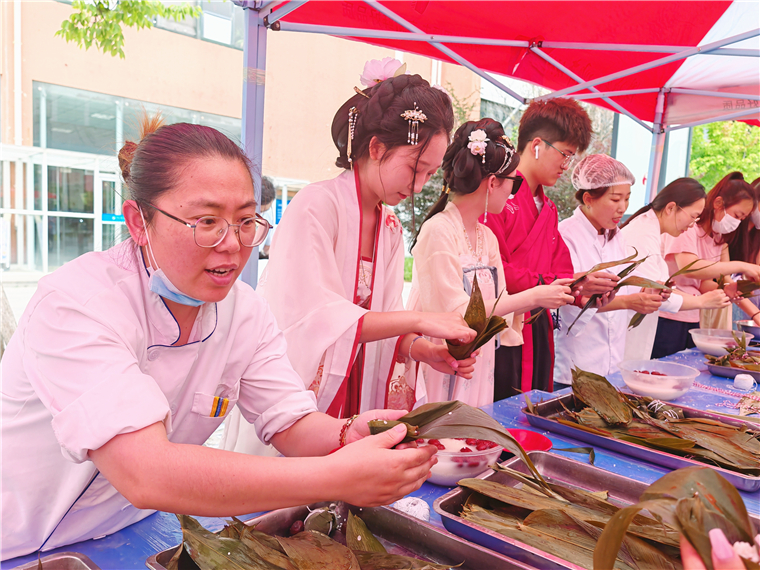 浓情粽飘香,端午享安康。活动现场,后勤保障部组织校内餐厅工作人员带领学生开展包粽子体验活动。
