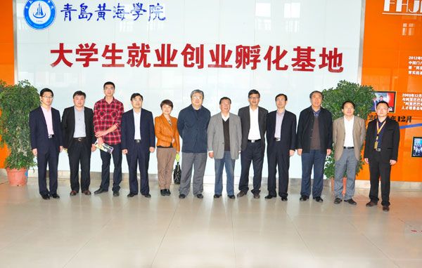 方漪副主席、贺照宾副巡视员、庄桂宝副局长、刘莉莉副书记以及刘常青董事长共同为大学生就业创业孵化基地揭牌并合影留念
