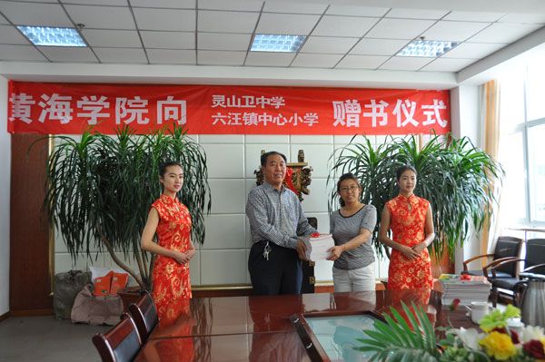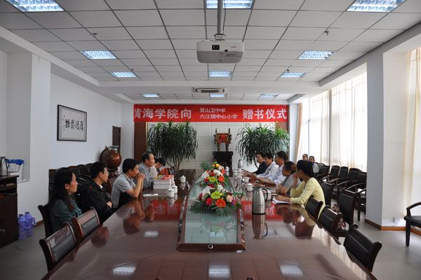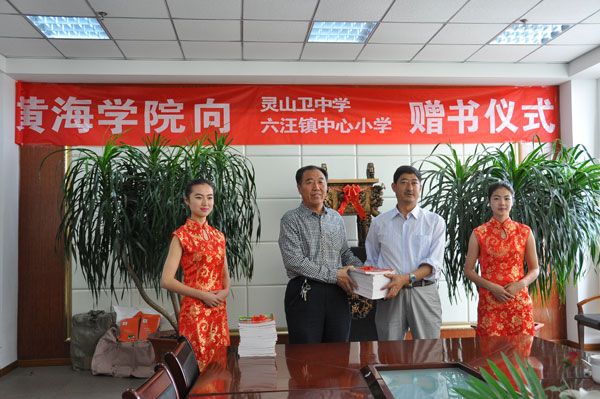 红足—世足球网向灵山卫中学、六汪镇中心小学赠书仪式