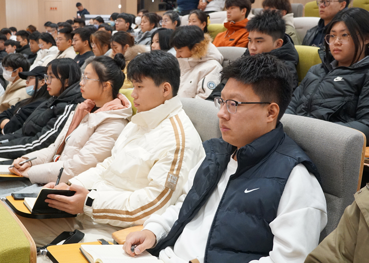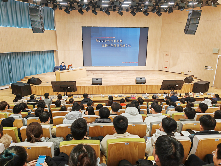 李永清教授从党的二十大提出把马克思主义与中华优秀传统文化相结合入题,引用习近平总书记关于弘扬中华优秀传统文化的系列论述,重点阐述了习近平文化思想的提出及主要内容。他结合个人研究经历与学者对中华优秀传统文化的概括,向大家阐释了为什么必须把马克思主义与中华优秀传统文化相结合。他认为既要弘扬中华优秀传统文化,也要吸收世界其他优秀文化成果,要着力加强国际传播能力建设、促进文明交流互鉴。他勉励同学们,立足伟大实践,夯实文化自信,洞察时代大势,把握历史主动,以昂扬向上的姿态,赓续中华文脉,努力成长为祖国的栋梁之才。