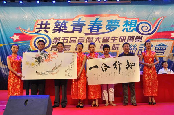 焦奎院长、冯宜明书记向台湾大学生研习营赠送书画作品