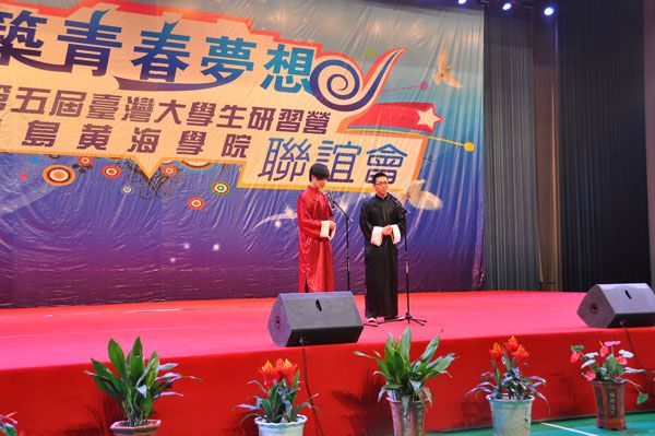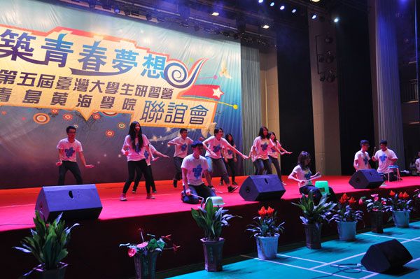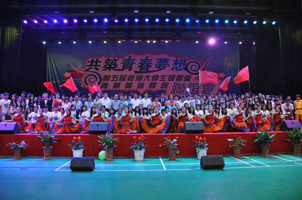 晚上,“两岸青年手拉手”联欢晚会在黄海学院体育馆举行。两岸学生表演了《礼》、《当我们爱在一块》、《两岸齐声唱》、《跪羊图》等精彩节目。现场欢声笑语,气氛热烈,两岸同胞浓浓的亲情感染着在场的每一个人。最后,联谊会在舞蹈《二十年后再相会》中落下帷幕。