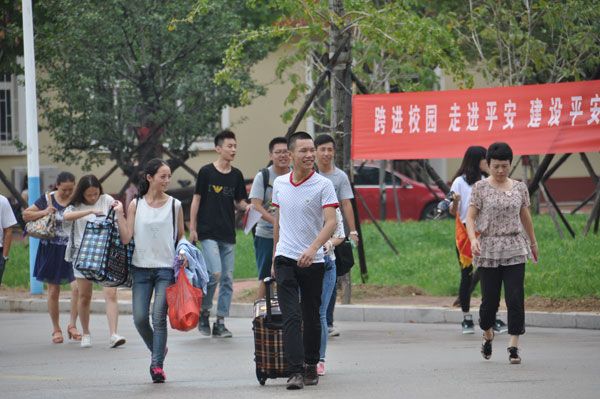 近日,黄海学院2014级新生开始报到,校园内人头攒动、场面火爆,教学楼前停满了各种车辆,部分新生甚至一大早就在家长的陪同下,拎着大包小包的来到了学校。