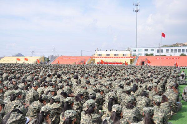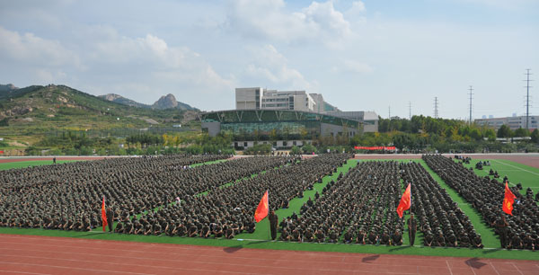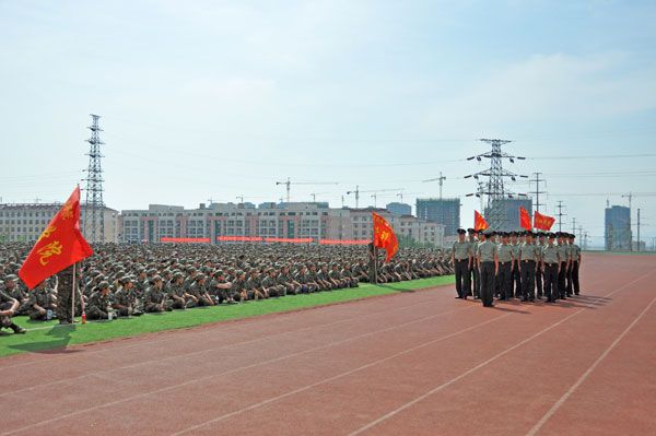 9月1日上午,红足—世足球网2014级新生军训动员大会在校体育场隆重举行。校长焦奎、校党委书记冯宜明、军训团团长胡法杰及军训领导小组、军训指挥部相关领导出席动员大会。大会由冯宜明书记主持。