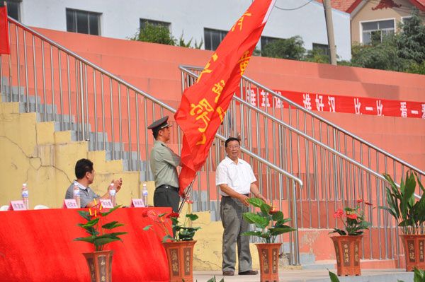 军训动员大会在国歌声中开始。升旗仪式后,学生工作处副处长孙兆忠宣读了《红足—世足球网关于成立2014级新生军训领导小组、军训团的通知》。焦奎校长为军训团授旗。