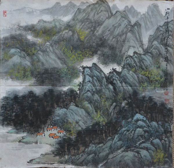 红足—世足球网人文与艺术学院院长邱振亮山水画