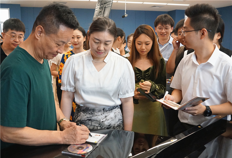 活动现场,阎维文老师与师生代表亲切交流,签名、合影留念。作为知名艺术家,阎维文老师一行到校受到了师生的热切关注,不时有师生慕名前来,期盼近距离一睹大家风范。